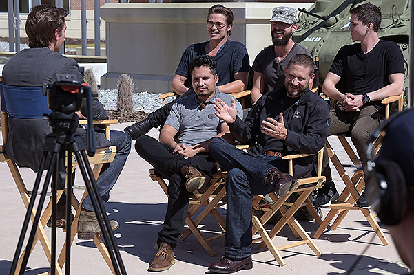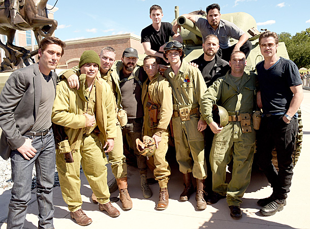 В рамках промо-тура военной драмы «Ярость» голливудские актёры Брэд Питт и Шайа Лабаф представили фильм американским военным на одной из крупнейших военных баз США Форт-Беннинг.
