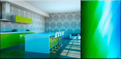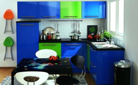 Голубой и зеленый нужно использовать на кухне, где планируется экстравагантная, ультрасовременная мебель. Шикарно на фоне зелено-голубой кухни смотрится белая мебель.