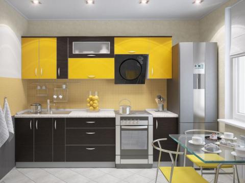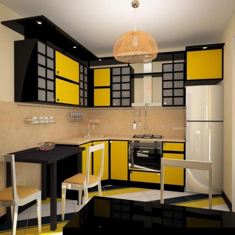 Черный с желтым подойдет тем, у кого кухня отличается огрехами планировки. Это очень яркое сочетание, которое сможет оттянуть внимание на себя, оставив в тени все недостатки.