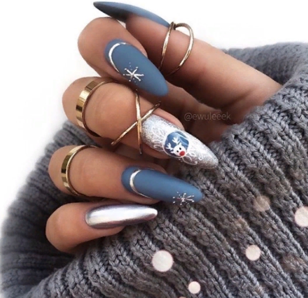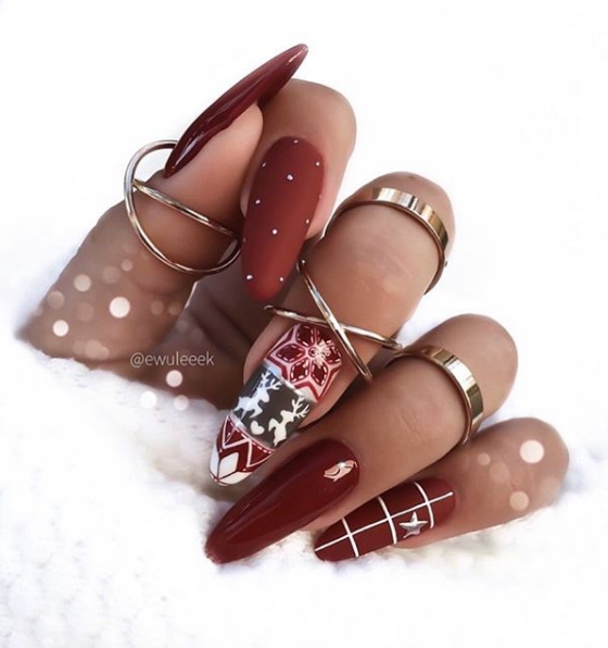 Очень эффектными считаются идеи маникюра с различными принтами и рисунками, которые будут уместны для новогоднего торжества.