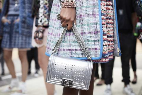 Твид, как оказалось, можно носить не только в виде строгих костюмов. Твидовыми могут быть и юбки, и ботфорты, и даже сумки.