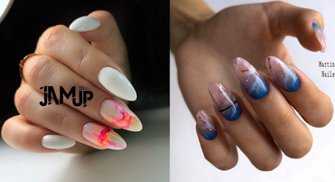Акварель, она же размытость или дымка на ногтях. Осенью 2019 это будет самый модный маникюр.