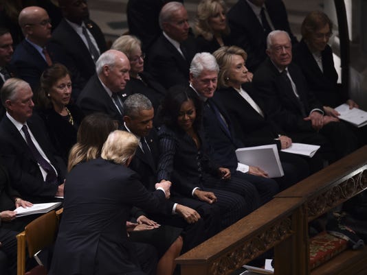 В государственных похоронах покойного 41-го президента США Джорджа Буша-старшего приняли участие его преемники Барак Обама, Джордж Буш-младший, Билл Клинтон и их жены, а также 39-й президент США Джимми Картер с супругой. Дональд Трамп и первая леди, Мелания Трамп также посетили церемонию прощания.