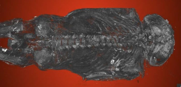 Крошечная 2100-летняя мумия из Древнего Египта долгое время считалась останками птицы. В своих выводах ученые опирались на внешний вид (украшения в форме ястреба) и небольшой размер мумии. Но исследователи, проводившие компьютерную томографию еще в 2018 году, обнаружили нечто совершенно иное. Мумия оказалась останками сильно деформированного человеческого плода. Кости принадлежали человеческому эмбриону мужского пола, между 22 и 28 неделями беременности, с тяжелыми спинальными аномалиями и редким врожденным дефектом, который мешает мозгу и черепу нормально развиваться. Среди обнаруженных при сканировании дефектов развития - волчья пасть и раздвоенная губа.