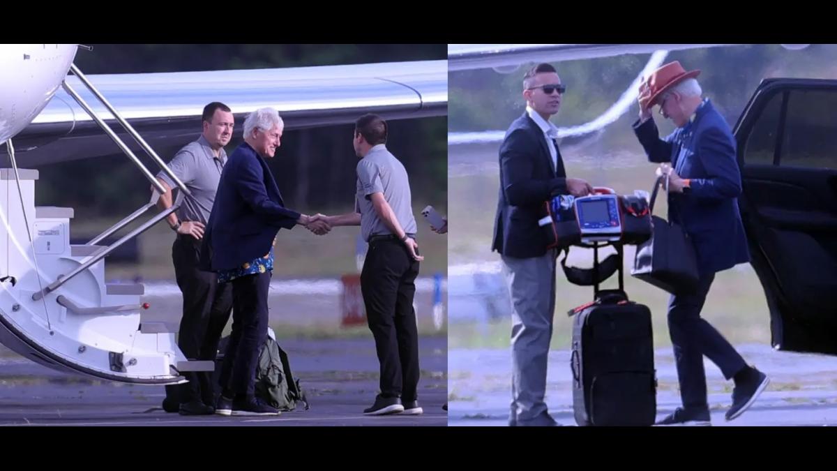 Экс-глава Белого дома Билл Клинтон попал в объективы камер журналистов в Хэмптоне. Бдительные сотрудники СМИ разглядели сумку для портативного дефибриллятора.