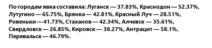 ЦИК ЛНР сообщает последние данные явки в субъектах Луганской народной республики по состоянию на 17:00