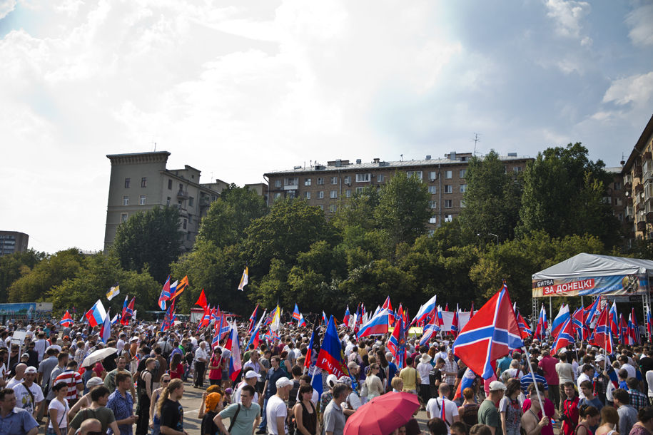 2 августа в субботу, в Москве состоялся митинг с требованием к президенту РФ Владимиру Путину ввести войска на Украину в Донбасс. Акцию организовала партия «Справедливая Россия». По разным данным на митинге собралось от 1,5 до 4 тысяч человек.