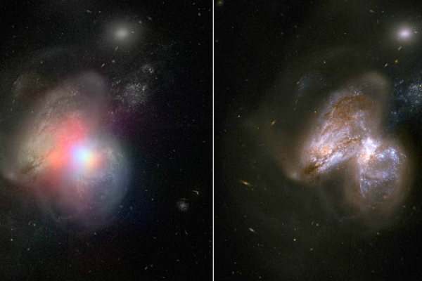 На сайте NASA был опубликован снимок, полученный с помощью телескопа Хаббл и телескопа NuSTAR, показывающий столкновение двух галактик, расположенных в 134 миллионов световых лет от Земли. Галактики имеют название Arp 299. В каждой из них расположены сверхмассивные черные дыры.
