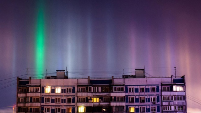 В эту ночь жители Москвы смогли наблюдать в небе уникальное для этих широт природное явление. Вертикальные столбы света пронзили московское небо. Они исходят от какого-либо светового источника – Луны или Солнца.