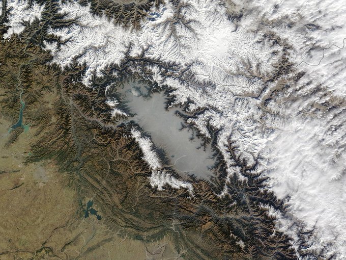 Туман над долиной Кашмир, Индия. Фото со спутника Terra.
