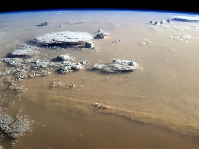 Песчаная буря над пустиней Сахара. Фото астронавтов МКС.
