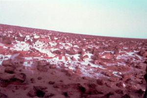 Специалисты NASA опубликовали снимок, выполненный при помощи камеры аппарате MRO, установленной на Марсе. На фото изображены скалы, покрытые льдом, однако он находится только на южных склонах, предполагается, что в северной части лёд уже растаял.